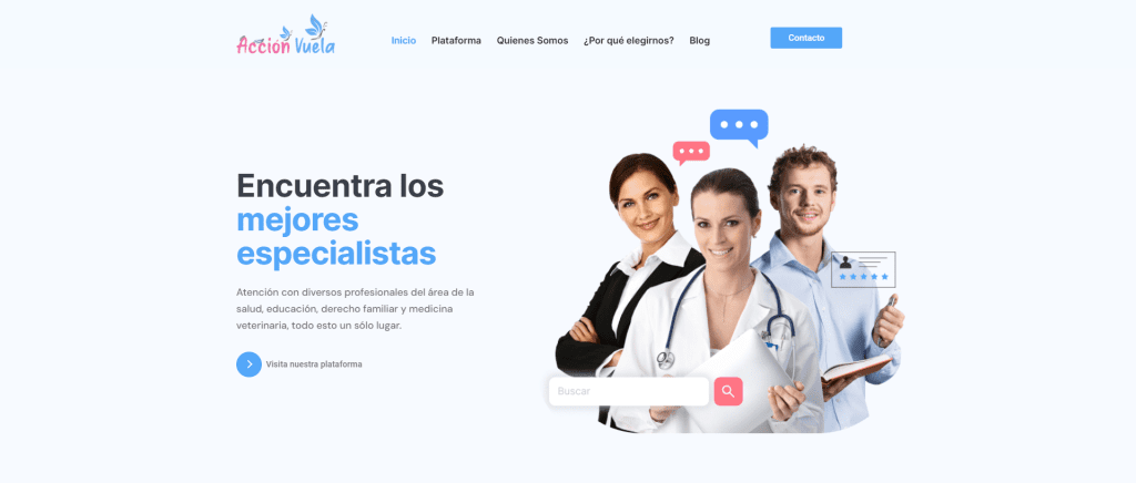Desarrollamos una plataforma web para Acción Vuela, una destacada empresa chilena de telemedicina, enfocándonos en resaltar su experiencia y servicios mediante un diseño innovador y una experiencia de usuario excepcional, alcanzando resultados notables.